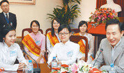 21일 이명박 대통령과 응우옌민찌엣 베트남 국가주석이 정상회담을 하는 동안 이 대통령의 부인 김윤옥 여사는 하노이 한국학교를 찾았다. 김 여사는 교사 및 학생들과의 간담회에서 “세 살 버릇 여든까지 간다는 속담이 있는데 부모님과 선생님들이 어떻게 교육시키느냐가 중요하다. 대통령도 가난하고 어렵게 자라셨지만 부모님, 선생님 덕분에 오늘날 대통령이 됐다”며 교육의 중요성을 강조했다.이수연 학생(여·10학년)이 “방송 프로듀서가 돼 어려운 사람들에게 꿈을 주고 베트남 문화를 한국에 잘 알릴 수 있는 프로그램을 만들고 싶다”고 하자, 김 여사는 “꿈을 욕심으로 가지지 말고 비전으로 가지면 글로벌 시대에 리더의 역할을 충실히 할 수 있다. 작은 일에 감사할 줄 아는 사람이 되길 바란다”고 격려했다.김 여사는 ‘한국어-베트남어 실용 핸드북’(전 2권) 20권 등 한국에서 준비해간 선물을 학생들에게 전달했다. 동아일보사와 재단법인 행복세상(이사장 김성호 전 법무부 장관), GS칼텍스재단, 삼성이 공동 기획한 이 책은 한국 내 다문화가정을 위한 실용서 시리즈의 하나로 발간한 것으로 양국의 각종 정보와 기본 회화 등을 담고 있다.이어 하노이 시내 군(軍)중앙병원을 방문한 김 여사는 SK텔레콤의 후원으로 안면기형 성형수술을 받은 어린이 환자 4명에게 한국의 전통죽인 ‘타락죽’을 나눠준 뒤 6세 남자아이에게 죽을 직접 먹여주며 “잘 먹고 빨리 회복하길 바란다”고 기원했다. 타락죽은 찹쌀을 맷돌에 갈아 우유를 넣고 끓인 죽으로 궁중에서 보양식으로 애용됐으며 TV 드라마 ‘대장금’에도 소개된 바 있다.하노이=정용관 기자 yongari@donga.com}