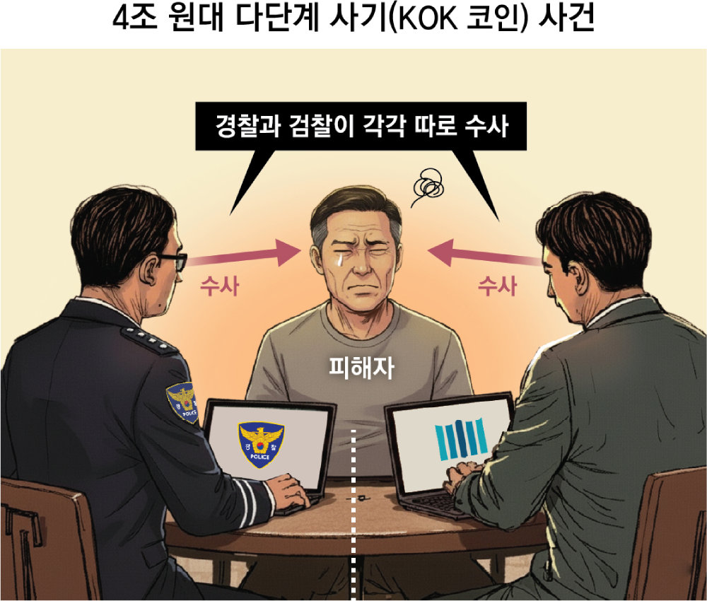 4조 원대 피해 규모가 발생한 다단계 ‘스캠(사기) 코인’ 사건인 콕(KOK) 코인 사건은 2022년 수사가 시작됐다. 하지만 아직까지 가해자에 대한 법원 판결이 나오지 않았다. 피해자만 90만 명에 이르는 콕 코인 사건은 울산경찰청과 서울동부지검 등 전국에서 동시다발적으로 피해자들의 고소가 접수되며 검경이 각각 수사에 착수했다. 2021년 검경 수사권 조정 이후 검찰이 직접 수사 개시를 할 수 있는 사건은 제한적이었지만, 부패 범죄와 경제 범죄 등 대통령령으로 정하는 2대 범죄에 대해선 검찰도 수사할 수 있다 보니 1, 2차 수사기관이 동시다발적으로 수사하게 된 것이다. 콕재단은 2021년 4월부터 국내외 투자자를 대상으로 “토큰 1개당 100달러 이상의 가치가 있다”고 홍보했다. 하지만 한때 개당 7달러까지 상승했던 가격은 지난해 초 0.01달러 수준으로 폭락하면서 피해를 호소하는 이들이 늘었다. 콕재단 측은 시세를 끌어올리기 위해 더 많은 투자자를 모아오면 수당을 더 지급하는 전형적인 ‘폰지 사기’(다단계 금융사기) 수법으로 돈을 뜯어낸 것으로 조사됐다.● 피해자 “수사기관 교통정리 안 돼 6개월 날려” 다단계 사기 사건의 특성상 신속한 초동 수사가 필요했지만 1, 2차 수사기관은 중복 수사를 이어 갔다. 결국 사건이 접수된 지 수개월 뒤에야 울산경찰청이 검찰로부터 사건을 이첩받아 통합 수사에 착수했다. 콕 코인 사건의 피해자 중 한 명인 강모 씨는 14일 “경찰이든 검찰이든 한 곳에서 빠르게 수사가 되길 바랐지만, 그렇지 못해 초기 수사의 골든타임을 놓쳤다”며 “수사기관끼리 교통정리가 안 돼 고소한 뒤 6개월 가까이 시간을 허비했고, 지난해 겨우 울산지검이 주범 등을 기소했지만 피해 회복은 여전히 막막한 상황”이라고 말했다. 울산지검은 지난해 12월 30일 콕재단 운영자를 특정경제범죄가중처벌법상 사기와 유사수신행위 등의 혐의로 구속 기소하고, 올 6월 공범 5명을 불구속 상태로 재판에 넘겼다. 그나마 구속됐던 운영자도 올 6월 10일 보석으로 풀려났다. 보석 소식에 당시 서울중앙지검에 고소장을 냈던 피해자들은 울산지검으로 사건을 이송한 데 대해 “수사 축소”라고 주장하며 담당 검사 등을 고위공직자범죄수사처(공수처)에 고발하기도 했다. 법조계 안팎에선 내년 10월부터 검찰청이 중대범죄수사청(중수청)과 공소청으로 분리되면 수사기관 구조가 복잡해져 중첩 수사로 인한 피해 사례가 늘어날 것이라는 우려가 나온다. 경찰청 국가수사본부(국수본)와 공수처에 더해 중수청까지 신설되면 사건 관할을 둘러싼 기관 간 혼선은 불가피하며, 특히 대형 경제 사건이나 비리 사건에서는 충돌 양상이 더욱 심화될 수 있다는 지적이다. 한 부장판사 출신 변호사는 “어느 기관이 어떤 사건을 수사할지, 신설되는 중수청을 포함해 수사 범위와 권한 등을 구체적으로 정리하지 못하면 한 사건을 두고 여러 기관에서 중복 수사해 불필요한 수사로 이어질 것”이라며 “반대로 수사 책임을 회피해 어느 곳에서도 수사하지 않는 수사 공백 사태가 벌어질 수도 있다”고 밝혔다. 향후 논의 과정에서 조정될 가능성이 있지만 현재 개정안에 따르면 중수청은 △부패 △경제 △공직자 △선거 △방위산업 △대형참사 △마약 △내란·외환 등 8대 범죄 수사를 맡게 된다.● 고위 공직자 둘러싼 ‘핑퐁 수사’ 벌어져2020년 7월 공수처가 신설된 후 이 같은 혼란이 몇 차례 나타나기도 했다. 감사원 3급 간부의 뇌물수수 의혹은 검찰과 공수처 간 ‘핑퐁 사건’이 된 대표적 사례다. 고위 공직자가 저지른 범죄 수사를 담당하는 공수처는 감사원 3급 간부인 김모 씨의 15억여 원 뇌물 사건을 수사한 뒤 2023년 11월 검찰에 특가법상 뇌물 혐의 등을 적용해 기소해 달라며 사건을 넘겼다. 공수처법에 따르면 공수처는 판사와 검사, 경무관 이상 경찰에 대해서만 기소권을 갖고 있고 나머지 고위 공직자에 대해선 수사권만 갖고 있기 때문이다. 하지만 검찰은 ‘보완 수사가 필요하다’며 사건을 돌려보냈다. 그러나 공수처는 “검찰의 보완 수사 요구는 공수처법에 나와 있지 않아 법적 근거가 없다”며 접수를 거부했다. 결국 해당 사건은 1년여간 방치되다가 지난해 11월이 돼서야 검찰이 보완 수사해 처분하는 것으로 정리됐다. 그러나 현재까지도 김 씨에 대한 처분이 내려지지 않으면서 공수처 신설 당시 공수처법에 보완 수사 주체, 요청 근거, 기소 범위 등을 명확히 하지 않아 발생한 혼선이라는 비판을 받았다. 최근 하이브 방시혁 의장에 대한 자본시장법 위반 혐의 사건의 수사 주도권을 두고 검찰과 경찰이 신경전을 벌인 상황도 이 같은 수사권 조정 미완의 단편으로 볼 수 있다. 서울경찰청 광역수사단 금융범죄수사대는 지난해 12월 방 의장에 대해 압수수색 영장을 검찰에 신청하는 등 수사에 착수했다. 하지만 당시 서울남부지검은 검찰의 수사 지휘를 받는 금융감독원 조사가 진행 중이란 이유로 이를 두 차례 반려했다. 그러다 세 번째 신청 만에 올 6월 압수수색 영장이 발부돼 경찰 수사가 진행되고 있다. 여기에 더해 올해 7월 금융위원회 증권선물위원회도 방 의장을 자본시장