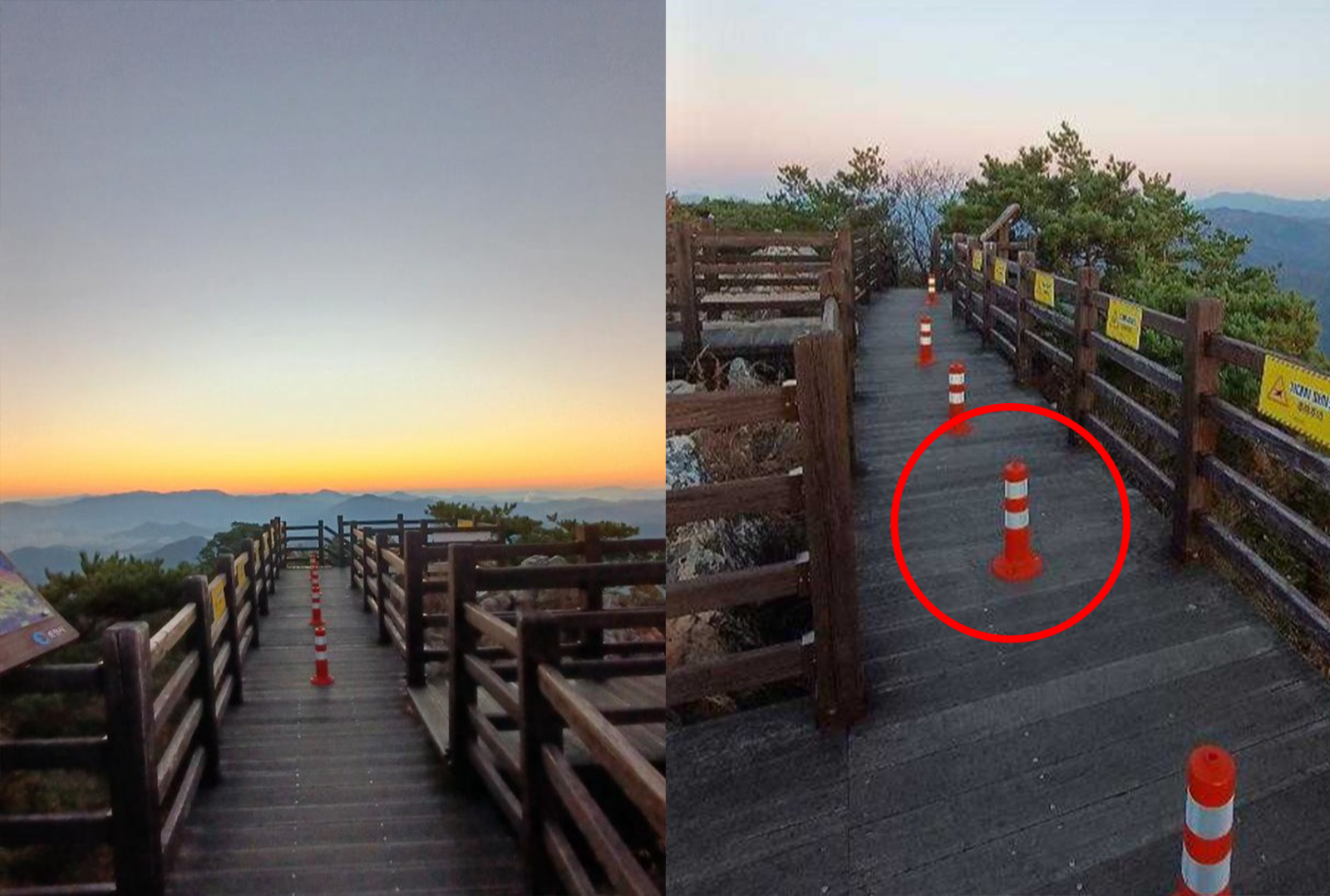 일출 명소로 유명한 강원도 춘천 삼악산 전망대에서 통로를 막고 텐트를 설치한 ‘민폐 캠핑족’ 논란이 확산되자, 춘천시가 뒤늦게 대응에 나섰다. 시는 현장에 안전시설물과 캠핑 금지 안내판을 설치하며 재발 방지에 나섰다.4일 온라인 커뮤니티 ‘보배드림’에는 “삼악산 전망대에 캠핑금지 스티커와 안전시설물이 설치됐다”는 제목의 영상이 게시됐다.● 전망대 데크 한 가운데 선 ‘안전시설물’이 영상에는 삼악산 전망대의 나무 데크 통로 가운데에 바 형태의 안전시설물이 설치돼 있는 모습이 담겼다. 또한 난간 곳곳에는 ‘캠핑 금지’ 문구가 크게 적힌 간판도 생겼다. 계단 끝부터 전망대 안쪽까지 이어진 안전시설물은 텐트 설치 자체를 물리적으로 막는 구조다.이는 지난달 13일 삼악산 전망대 정상에서 한 무리의 캠핑객들이 텐트를 펴고 조리를 하는 장면이 목격돼 비판이 쏟아진 직후 내려진 조치다.당시 현장을 촬영한 시민 A씨는 “텐트가 통로를 완전히 가로막아 사람 한 명 지나갈 틈도 없었다”며 “세 명이 버너로 아침 식사를 준비하고 있었다”고 전했다. 공개된 사진에는 통행이 불가능할 정도로 통로를 가득 메운 텐트들의 모습이 고스란히 담겼다.누리꾼들은 “진작 이렇게 조치했어야 한다” “전망대를 캠핑장처럼 쓰는 건 이기적이다” 등 반응을 보였다. 일각에서는 “시설이 생겨도 일부 캠핑족은 계속 텐트를 칠 것”이라며 우려도 나타냈다.● 불법이지만 처벌은 모호…“벌칙 조항 미비”춘천시 관계자는 “간간히 비슷한 사례가 있었지만, 대부분 오전 중 텐트를 철거해 큰 문제가 되지 않았다”며 “이번에는 통행에 지장이 클 정도로 심각해 안전시설물을 설치하게 됐다”고 설명했다.현행법상 지정되지 않은 구역에서의 야영과 취사는 불법이다. 자연공원법 제27조에 따르면 허가되지 않은 장소에서 캠핑이나 취사를 하면 200만 원 이하의 과태료가 부과된다. 취사 과정에서 불을 사용할 경우 산림보호법 제34조 위반으로 최대 500만 원의 과태료가 부과될 수도 있다.하지만 실제 처벌은 쉽지 않다. 춘천시 관계자는 동아닷컴에 “삼악산 전망대는 관광지로 지정된 구역이라 관광진흥법이나 산림보호법을 적용해야 하는데, 관광진흥법에는 벌칙 조항이 없다”며 “통행에 지장이 있을 경우 텐트를 치울 수는 있지만, 법적 제재가 어려운 실정”이라고 설명했다.시는 대신 현장 점검을 강화하기로 했다. 관계자는 “지속적인 현장 점검과 예방 활동으로 모두가 쾌적하게 즐길 수 있는 관광환경을 만들겠다”고 밝혔다.김영호 기자 rladudgh2349@donga.com}