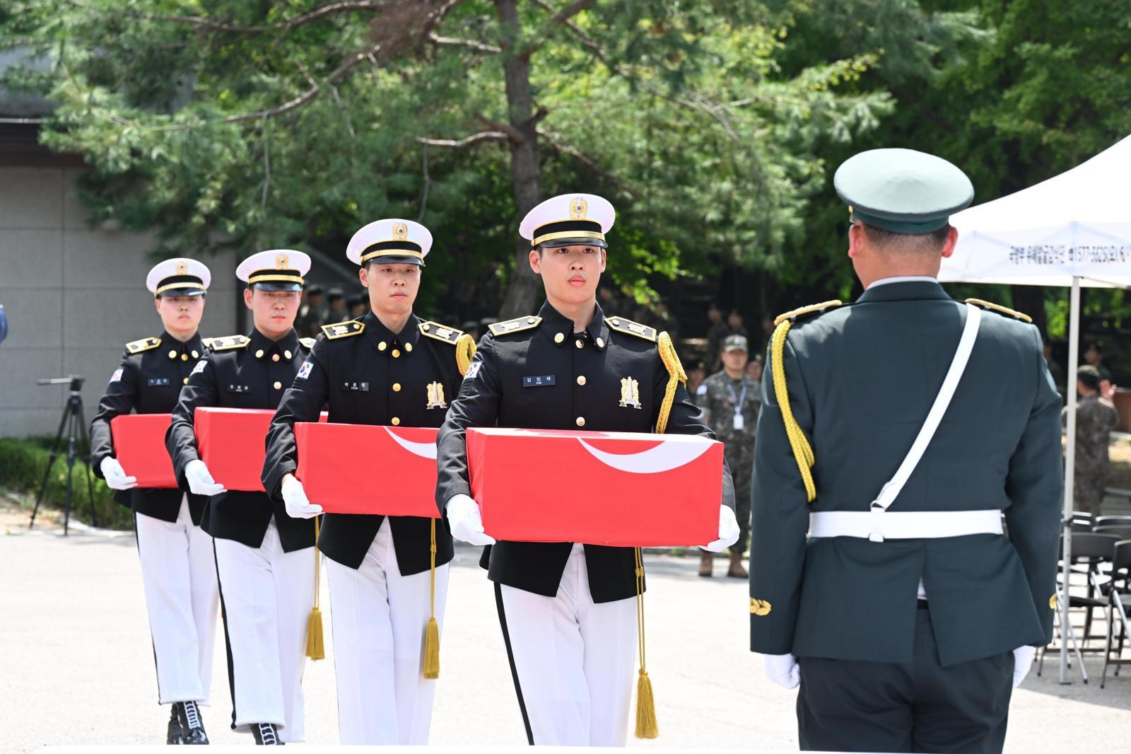 우리 군이 6·25 전쟁 당시 유엔군으로 대한민국을 위해 싸우다 전사한 튀르키예군 유해 4위를 인수했다. 국방부 유해발굴감식단(국유단)은 21일 국유단 신원확인센터 앞에 마련된 야외행사장에서 유엔군사령부로부터 튀르키예군 유해 인수식을 거행했다고 밝혔다.미 국방부 전쟁포로·실종자 확인국(DPAA)은 14일 정밀감식을 거쳐 보관 중이던 튀르키예 군 유해를 수송기를 통해 하와이 히캄 공군기지에서 오산 공군기지로 운송해 유엔사로 인도했다. 유엔사에서는 유해들을 캠프 험프리스(경기 평택 미군기지)내 미8군 영현소에 임시 보관해왔다.튀르키에 유해 4위는 미 DPAA가 1996∼2005년 북한지역에서 수습한 유해 3위, 1984년부터 추진 중인 하와이 국립 태평양 기념 묘지(펀치볼) 재개장 과정에서 확인된 유해 1위다. 튀르키예군은 ‘전사한 장소가 곧 순교의 땅’이라는 전통에 따라 타국일지라도 전사한 곳에 묻히는 것을 명예로 여긴다고 한다. 튀르키예 전사자의 유해가 곧바로 본국으로 송환되지 않고, 한국으로 건너온 것도 이 때문이다.유해들은 국내에서 최종 정밀 감식을 받은 뒤 주한 튀르키예 대사관과의 협의를 거쳐 부산 유엔기념공원에 안장되거나 본국으로 송환될 예정이라고 국유단은 설명했다. 이날 행사에는 살리 무랏 타메르 주한 튀르키예 대사와 이근원 국유단장 등이 참석했다.국유단 관계자는 “70여년 전 대한민국을 지키다 장렬히 산화한 유엔군의 헌신을 기억하고 끝까지 보답하는 게 우리의 책무”라며 “튀르키예 전사자들을 최고의 예를 다해서 모실 것”이라고 말했다.윤상호 군사전문기자 ysh1005@donga.com}