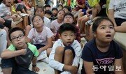 “‘와이(Why)?’ 책 주인공 이름이 뭐죠?” “엄지, 꼼지요!” 전북 완주군 구이면 대덕초등학교를 지난달 30일 방문한 이동도서관 ‘책 읽는 버스’에서 ‘와이?’ 책 시리즈의 그림 작가 이영호 씨(47)가 질문을 하자 학생들이 큰 소리로 외쳤다. “엄지는 책을 읽고 ‘엄지 척’ 하는 훌륭한 어린이가 되라는 의미에서, 꼼지는 큰 꿈을 펼치라는 뜻에서 지은 이름이에요.” 어린이에게 인기가 뜨거운 와이 책을 14년간 그린 이 작가의 설명에 학생들은 고개를 크게 끄덕였다. 아이들은 하나라도 놓칠세라 진지한 표정으로 귀 기울이고 있었다. 이 수업은 사단법인 ‘작은도서관만드는사람들’이 문화체육관광부와 KB국민은행의 후원으로 마련했다. 이 작가가 책 만드는 순서를 설명한 후 그림 그리는 과정을 담은 영상을 보여주자 질문이 터져 나왔다. “책 한 권 만드는 데 얼마나 걸리나요?” “선생님 손목에 하신 건 뭐예요?” 이 작가의 설명이 이어졌다. 책을 만드는 데는 8개월이 걸린다. 편집부에서 주제를 정하면 이야기 작가가 글을 쓴다. 그림 작가가 그리는 작업에는 3, 4개월이 필요하다. 편집부가 말 풍선을 채우면 관련 분야를 전공한 교수가 감수한 후 인쇄에 들어간다. 이 작가는 “땀으로 손목이 끈적끈적해지면 선을 한 번에 매끄럽게 그리기 어려워 손목 보호대를 찬다”고 말했다. 이후 초록빛 잔디가 깔린 운동장에 전교생이 모인 가운데 캐릭터 그리기가 진행됐다. 이 작가가 화이트보드에 엄지, 꼼지, 삼촌을 슥슥 그렸다. 그런 다음 눈썹과 입 모양만 바꿨을 뿐인데 꼼지가 화난 표정이 되고, 엄지는 우는 모습으로 변신했다. 선한 표정을 짓고 있던 삼촌은 악당이 됐다. 펜이 움직일 때마다 “멋지다!” “대박이다!” 하는 감탄이 울려 퍼졌다. 수업이 끝나자 이 작가에게 좋아하는 캐릭터를 그려 달라며 아이들이 길게 줄을 섰다. ‘삼촌’이 그려진 스케치북을 받아 든 김반석 군(4학년)은 “한글을 익히자마자 제일 처음 본 책을 만든 선생님을 만나 신기하다”며 웃었다. 좋아하는 ‘케이’ 캐릭터 그림을 받은 송인우 군(4학년)은 “오늘이 빨리 오길 손꼽아 기다렸다”며 스케치북을 안고 신나게 달려갔다. 웹툰 작가를 꿈꾸는 서예준 양(6학년)은 상기된 표정이었다. 서 양은 “웹툰 작가 선생님을 만난 게 처음이라 기쁘고 뿌듯하다”며 만화 캐릭터를 한가득 그린 스케치북을 수줍게 보여줬다. ‘작은도서관…’은 2년 전 전교생이 70여 명인 이 학교의 도서관을 리모델링해 학생과 주민이 함께 이용하는 ‘학교마을도서관’으로 만들었다. 학생들은 등교 후 수업이 시작되기 전까지 도서관에서 자유롭게 책을 읽는다. 교사들은 독서와 관련된 여러 체험 프로그램도 운영하고 있다. 예림당 출판사는 이날 와이 책을 도서관에 기증했다. 박화선 교장은 “책과 관련된 다양한 경험을 할수록 독서에 대한 흥미가 커진다”며 “작가와의 만남은 책에 대한 호기심을 높여 학생들이 독서에 더욱 관심을 갖게 만드는 계기가 될 것으로 보인다”고 말했다. 완주=손효림 기자 aryssong@donga.com}