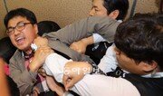 한중 자유무역협정(FTA) 비상대책위원회 대표단 30여 명이 24일 서울 강남구 삼성동 코엑스에서 열린 한중일 FTA 공청회장에서 FTA 중단을 외치다 경비원들에게 끌려 나가면서 공청회가 15분 정도 중단됐다. 공청회에서 김영귀 대외경제정책연구원 지역통상팀장은 “한중일 FTA 협정이 발효되면 10년간 국내총생산(GDP)이 163억 달러(약 18조 원) 증가할 것으로 추산된다”고 밝혔다. 홍진환 기자 jean@donga.com}