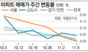 서울 아파트 가격 상승세가 둔화되면서 수도권 주택시장이 안정세를 되찾고 있다. 12일 부동산114에 따르면 지난주 서울 아파트 매매가는 보합(0.00%)을 보였다. 송파구(―0.13%), 강동구(―0.02%) 등 범강남권 매매가격이 떨어졌다. 9·13 부동산 대책 이후 서울 매수세가 줄어들면서 매물이 풍부한 대단지가 많은 지역 위주로 호가가 떨어졌기 때문으로 분석된다. 동작(0.07%), 서대문(0.07%), 은평(0.07%) 등은 소폭 올랐다. 신도시와 경기·인천 아파트 값은 각각 0.04%, 0.02% 상승했다. 부동산114가 9·13 대책 이후 두 달 동안 서울의 구별 매매가 변동률을 분석한 결과 노원구(3.30%), 구로구(2.48%), 관악구(2.38%)의 아파트 값이 많이 올랐다. 강남구(1.09%), 동작구(0.94%), 용산구(0.52%) 등은 오름폭이 작았다. 부동산114 관계자는 “대책 발표 이후 가격 상승폭이 컸던 지역의 오름폭이 줄어든 대신 그동안 서울 내에서 소외된 지역의 가격이 오르는 상황”이라고 설명했다.박재명 기자 jmpark@donga.com}