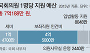 국회의원 1명을 늘리면 보좌진 급여를 포함해 연간 7억 원이 넘는 국민 혈세가 더 들어가는 것으로 나타났다. 새정치민주연합 혁신위원회 제안대로 현재 의원정수가 300명에서 369명이 될 경우 국회의원실에 지원하는 예산만 484억2972만 원이 늘어나는 셈이다. 369개 의원실 전체에 지원되는 세금은 2589억9372만 원이다. 동아일보가 30일 단독 입수한 국회사무처의 ‘의원실 지원예산 현황’ 자료에 따르면 각 국회의원실이 지원받은 1년 예산(올해 기준)은 7억188만 원이다. 세비(歲費)와 보좌직원 인건비 및 각종 지원비 등을 모두 합친 것이다. 의원들이 ‘세비’ 명목으로 받는 것은 연간 1억4700만 원 정도. 의원수당이 1억 원이고, 입법 및 특별활동비는 4700만 원이다. 의원실에 지급되는 전체 지원금의 21%에 불과하다. 새정치연합 이종걸 원내대표는 최근 “의원정수를 390명까지 늘릴 수 있다. 그 대신 세비를 지금의 절반으로 낮춰야 한다”고 발언했다. 하지만 세비가 차지하는 비중이 전체 지원예산의 5분의 1에 불과해 세비를 줄인다 해도 실질적인 예산 절감 효과는 거의 없을 것으로 보인다. 이 원내대표의 제안대로 의원 규모를 390명으로 확대한 뒤 세비를 절반으로 줄이더라도 추가로 발생하는 비용은 연간 565억5420만 원에 이른다. 의원정수 확대 논의가 의원 스스로의 기득권을 내려놓는 노력이 전제되지 않을 경우 수박 겉핥기에 그칠 것이라는 우려가 나온다. 결국 의원 정수 논의는 의원들에 대한 전체적인 예산 지원 내용까지 감안해 심층적으로 진행되어야 한다는 지적이 제기된다. 의원들이 받는 세비는 행정부 차관보다는 높고 장관보다는 낮은 수준이다. 하지만 의원회관에 사무실이 제공되며 4급 2명, 5급 2명 등 7명까지 보좌진을 임명할 수 있다. 이들의 연간 인건비는 4억5000만 원으로 의원실 지원 예산의 64%를 차지한다. 의원들은 ‘입법활동 지원’과 ‘의원사무실 운영’ 명목으로도 연간 1억488만 원을 지원받는다. 고성호 기자 sungho@donga.com김예윤 인턴기자 고려대 역사교육과 4학년}