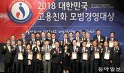 동아일보가 주최하고 고용노동부, 산업통상자원부, 과학기술정보통신부, 여성가족부가 후원하는 ‘2018 대한민국 고용친화 모범경영대상’ 시상식이 18일 서울 중구 더플라자호텔에서 열렸다. 스타벅스코리아와 파나소닉코리아가 2년 연속 수상한 것을 비롯해 롯데건설, 신세계아이앤씨, 한화토탈, 한국예탁결제원, 소상공인시장진흥공단, 충남도 등 기업과 기관, 지방자치단체 24곳이 수상의 영예를 안았다. 양회성 기자 yohan@donga.com}