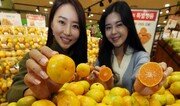 7일 서울 중구 롯데마트 서울역점에서 모델들이 새로 판매에 나서는 제주산 감귤을 선보이고 있다. 롯데마트는 10일까지 전국 모든 점포에서 ‘제주 황토밭 하우스 감귤’(1kg)을 7900원, ‘제주 황금향’(1kg)을 8900원에 판매한다. 양회성 기자 yohan@donga.com}