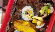 맛있는 김밥 싸서 나들이 오셨나이까. 허기지다고 급히 드시다 체하지 않도록 한 잎 얹어 드리옵니다. 맛있게 드시고, 건강히 자라셔서, 나라를 이끌 크고 훌륭한 사람으로 자라 주시옵소서. ―어린이집 소풍 도시락에 떨어진 낙엽을 촬영 양회성 기자 yohan@donga.com}