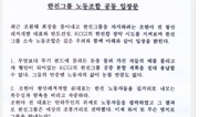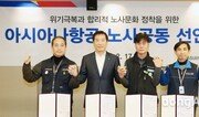 아시아나항공이 창립기념일을 맞아 신종코로나바이러스감염증(코로나19, 우한폐렴)과 경영환경 악화로 촉발된 위기상황에 대응하기 위해 3대 노조와 뜻을 모았다.아시아나항공은 17일 오전 10시 한창수 사장이 서울시 강서구 아시아나항공 본사에서 ‘아시아나항공 조종사 노동조합(위원장 김영곤)’, ‘아시아나 일반노조(위원장 심규덕)’, ‘아시아나항공 열린 조종사 노조(위원장 곽상기)’ 등 3대 노조와 함께 ‘위기 극복과 합리적 노사문화 정착을 위한 아시아나항공 노사 공동선언문’을 발표했다고 밝혔다.공동선언문에는 ▲안전운항 수행을 위한 전심전력의 노력 ▲노사협력의 중요성 인식 및 신뢰와 존중을 바탕으로 협력적 노사관계 유지 ▲노조는 위기극복에 한마음으로 동참, 회사는 조속한 경영정상화를 위해 최선의 노력 경주 ▲공동의 노력을 통한 현 위기상황 극복 및 항구적 노사 상생의 문화 정립 등의 내용이 포함됐다.이와 관련해 아시아나항공은 조만간 구체적인 자구안을 발표할 계획이라고 전했다.아래는 이번 노사 공동선언문 전문.위기극복과 합리적 노사문화 정착을 위한아시아나항공 노사 공동 선언문아시아나항공과 노동조합은 ‘코로나19’의 확산과 항공산업의 주변환경 악화 등으로 인해 창사 이래 최대의 위기를 맞고 있음에 깊이 공감하고 이를 극복하기 위해 아래와 같이 노사 공동선언문에 합의하고 이를 성실히 이행할 것을 선언한다.1. 회사와 노동조합은 책임의식을 갖고 안전운항을 위해 맡은 바 역할을 성실히 수행하는 데 전심전력(全心全力)을 다한다.1. 회사와 노동조합은 노사협력의 중요성을 인식하고 상호 신뢰와 존중을 바탕으로 협력적 노사관계를 유지한다.1. 노동조합은 회사를 신뢰하고 모든 역량을 결집하여 위기극복에 한마음으로 동참하며 회사는 경쟁력 제고를 통해 조속한 시일 내 경영정상화를 실현할 수 있도록 최선의 노력을 다한다.1. 회사와 노동조합은 현 위기상황을 공동의 노력으로 슬기롭게 극복하고 노사상생의 문화를 바탕으로 회사의 발전에 기여할 것을 다짐한다.동아닷컴 김민범 기자 mbkim@donga.com}