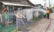 서울을 비롯한 중부지방에 폭염이 기승을 부린 5일 오후 송파구청은 송파소방서와 함께 관내 취약계층 거주지에 소방호스를 이용해 물을 뿌려 외부 온도를 낮춰주는 작업을 진행하고 있다.김재명 기자 base@donga.com}