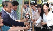 6일 오전 서울 종로구 청계광장에서 열린 ‘날마다 다회용컵(데일리 텀블러)’ 행사에서 김미화 자원순환사회연대 이사장과 박천규 환경부 차관, 김의승 서울시 기후환경본부장(왼쪽부터)이 시민들에게 텀블러를 나눠주고 있다. 환경부는 폐기물을 줄이기 위해 일회용컵 대신 다회용컵을 사용하는 캠페인을 시작했다.김재명 기자 base@donga.com}