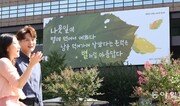 2일 서울 종로구 교보생명빌딩에 광화문글판 ‘가을편’이 공개됐다. 이번 문안은 이생진 시인의 시 ‘벌레 먹은 나뭇잎’에서 가져왔다. 타인을 위해 헌신하고 배려하는 삶이 아름답다는 의미를 담았다. 김재명 기자 base@donga.com}
