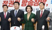 자유한국당이 4일 KBS 수신료 납부 거부 운동을 시작했다. 또 KBS 수신료를 강제 징수하지 못하도록 방송법 등을 개정하겠다고 밝혔다. 한국당은 이를 위해 이날 ‘KBS 헌법파괴 저지 및 수신료 분리징수 특위(KBS 특위)’를 발족했다. 나경원 원내대표는 “언론의 자유를 악용하는 KBS의 헌법파괴를 저지하고 수신료 강제징수를 금지해 KBS의 편향성을 바로잡고자 한다”고 말했다. 이어 “공영방송 공정성 회복을 위한 5개 법안을 추진하겠다”고 밝혔다. 한국당이 꼽은 중점처리 5대 법안은 △공영방송 사장 임명 시 특별다수제 도입을 골자로 하는 방송법 △방송문화진흥회 이사를 9인에서 13인으로 늘리는 방송문화진흥회법 △방송통신심의위원을 9인에서 13인으로 늘리는 방송통신위원회의 설치 및 운영에 관한 법 △KBS 수신료 분리징수 및 중간광고 제한 법 △한국교육방송공사법 등이다. 특히 한국당은 KBS의 시사 프로그램 ‘오늘밤 김제동’과 정경두 국방부 장관이 출연한 신년기획 프로그램을 문제 삼았다. 앞서 ‘오늘밤 김제동’에서는 김수근 ‘김정은 위인맞이 환영단장’이 북한 김정은 국무위원장을 찬양하는 내용의 인터뷰를 여과 없이 내보내 논란이 됐다. 또 정 장관은 신년기획 프로그램에 나와 “북한의 천안함·연평도 도발을 이해하고 넘어가야 한다”는 취지의 발언을 해 북한군의 도발을 정당화한다는 비판을 받았다. 나 원내대표는 “이런 발언들이 국민이 낸 수신료로 운영되는 KBS 전파를 탔다는 게 충격적”이라고 비판했다. KBS 특위는 이날 곧바로 ‘KBS 수신료 거부 챌린지’ 캠페인을 시작했다. 소셜네트워크서비스(SNS)와 거리 현수막 게시 등을 통해 전국 단위 수신료 거부 운동을 벌일 예정이다. 지상파의 중간광고를 허용하고, 케이블TV 등 유료방송에서 종합편성 채널의 의무전송을 폐지하는 정부 방침에 대해서도 제동을 걸기로 했다. 정용기 정책위의장은 “문재인 정권은 방송통신위원회를 동원해 지상파에 중간광고 허용 등 온갖 특혜를 주고, 정권 홍보에 소극적인 종편에는 의무송출 폐지로 노골적 압박을 하고 있다”고 주장했다. 한국당은 지상파 중간광고를 원천 금지하는 강효상 의원 발의안과 국회 동의를 얻을 시에만 중간광고를 허용하는 박대출 의원 발의안을 두고 당내 논의를 이어갈 예정이다. KBS 특위 위원장을 맡은 박 의원은 동아일보와의 통화에서 “종편 채널들이 내용적 측면에서는 안착 단계까지 이르지 않았다고 판단하고 있다. 의무전송 조항을 유지할 필요가 있다”고 밝혔다. 이에 대해 KBS는 이날 입장문을 내고 “제1야당이 잘못된 주장을 이어갈 경우 국민에게 공영방송 제도 자체에 대한 그릇된 인식을 줄 수 있다”며 “보도 공정성에 대한 문제를 수신료와 연계하는 것은 공영방송의 독립성을 위협하고 민주주의를 훼손하는 것”이라고 밝혔다. 더불어민주당 이해식 대변인은 “신재민 전 기획재정부 사무관이 극단적인 선택을 하면서 정치적 공방거리로 계속 활용하기 어려워지니까 공영방송 공정성 이슈로 방향을 선회한 것 아니냐”고 말했다. 최고야 best@donga.com·강성휘·유원모 기자}