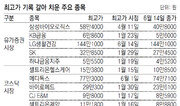 지난해 말 증권가엔 2018년 코스피가 3,000 선을 넘어설 수 있다는 장밋빛 전망이 쏟아졌다. 연초 들어 상승장도 이어졌지만 미국의 금리 인상, 보호무역 강화, 대북 리스크 등과 같은 악재가 잇따르면서 분위기는 반전됐다. 하지만 이런 기대심리를 반영하듯 유가증권시장(코스피)과 코스닥시장에 상장된 종목 10개 가운데 1.5개꼴로 올해 들어 최고가 기록을 갈아 치운 것으로 나타났다. 18일 한국거래소에 따르면 주식시장에 상장된 2098개 종목 가운데 313개(14.92%)가 연초 이후 이달 14일 사이 최고가 기록을 경신했다. 지난해에는 최고가 기록을 새로 쓴 종목이 같은 기간 전체 2077개 가운데 169개(8.14%)에 불과했다. 시장별로는 이 기간에 지수가 6.41% 상승한 코스닥에선 전체 1216개 종목 가운데 213개(17.52%)가 최고가를 기록했다. 이들 종목의 평균 주가 상승률은 무려 43.82%에 이르렀다. 지수가 2.2% 하락한 코스피에서도 전체 882개 종목 중 100개 종목(11.33%)이 최고가 기록을 새로 썼다. 이들 종목의 평균 주가상승률도 48.89%나 됐다. 업종별로는 코스피에선 화학(종목 수·18개)과 의약품(17개) 금융업(16개), 코스닥에선 기타서비스(23개)와 반도체·제약(각 22개)을 중심으로 최고가 기록을 갈아 치운 종목이 많이 나왔다.황재성 기자 jsonhng@donga.com}