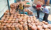 13일 오후 부산 사상구 엄궁농산물도매시장 직원들이 경매를 위해 국내산 늙은 호박을 하역하고 있다. 비타민, 칼륨, 레시틴 등이 풍부한 늙은 호박은 이뇨작용과 해독 작용이 뛰어나 회복기 환자나 노인, 산모들에게 좋다고 알려졌다. 박경모 기자 momo@donga.com}