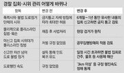 경찰이 제주 서귀포시 강정마을 사태를 계기로 집회 시위 시 대응 수위를 종전보다 더 강화하기로 했다. 경찰은 또 선도적이고 포괄적인 범죄예방을 위해 경찰관의 업무행동을 제약하는 현행 경찰관직무집행법 개정을 추진하기로 했다. 경찰청은 5일 그동안의 시위 관리 원칙을 더 강화해 도로 점거나 폴리스라인 침범 등 사실상 거의 단속하지 않았던 불법행위를 앞으로는 법대로 처리하겠다고 밝혔다. 폴리스라인 침범 등 경미한 불법행위의 경우 종전에는 물리적 충돌을 피하기 위해 증거만 확보한 뒤 사후에 처벌했다. 하지만 앞으로는 이 기준을 규정대로 적용해 불법시위 발생을 원천적으로 막겠다는 것이다. 경찰청 고위관계자는 “제주 해군기지 건설의 경우 지난 정부 때부터 민주적 절차를 거쳐 공사가 결정됐는데 시위대가 이제 와서 불법적으로 건설을 막고 있다”며 “공권력이 제 역할을 해달라는 국민의 요구를 고려해 이같이 결정했다”고 밝혔다. 이에 따라 경찰은 폭력시위나 불법 도로점거가 발생할 경우 시위를 주최한 단체에 1년 또는 6개월가량 유사한 내용의 집회 신고를 금지하기로 했다. 또 서울 종로구 세종로와 중구 태평로 등 주요 도로에서 시위대가 행진하는 것을 원칙적으로 금지하고, 부득이하게 허용할 경우 행진 시작과 종료 시간을 엄격히 지키도록 할 방침이다. 경찰은 또 일부 시위대가 행진을 핑계로 도로를 점거하는 관행을 없애기 위해 행진 속도도 ‘시속 3km 이상’ 등의 기준을 정하는 방안을 검토 중이다. 아울러 행진 중 신고된 차선을 넘어 도로를 불법 점거하고 일정 시간이 지나도 개선하지 않을 경우 물포 등을 동원해 즉각 해산시키기로 했다. 이와 함께 시위 중 폴리스라인을 침범하거나 훼손하는 경우 현장에서 바로 검거하고, 불법 시위대가 물리적으로 폴리스라인을 침범하면 공무집행방해죄를 적용하는 방안도 적극 검토하기로 했다. 경찰청은 이와는 별도로 사전에 선제적으로 범죄를 예방할 수 있도록 경찰관의 업무행동 범위를 확대하는 내용의 경찰관직무집행법(경직법) 개정을 추진 중이다. 경찰 관계자는 “현행 경직법은 경찰관의 업무범위를 정해놓은 규정이지만 이 때문에 자기 소관이 아니거나 명확히 범죄가 발생하지 않았을 경우 소극적으로 대응하는 문제점이 있었다”며 “사전에 우려되는 범죄에 적극적으로 대처할 수 있도록 법 개정을 추진하고 있다”고 말했다. 하지만 경찰의 경직법 개정은 일반 시민을 잠재적 범죄군으로 예단해 인권을 침해할 소지도 있다는 지적을 받고 있다.신광영 기자 neo@donga.com}