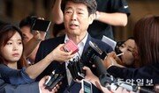 입법 청탁과 함께 금품을 받은 혐의로 검찰에 소환된 새정치민주연합 신계륜 의원이 12일 오전 서울 서초구 서초동 서울중앙지검으로 들어서며 취재진의 질문에 답하고 있다. 신 의원은 “절차에 따라 했던 입법 활동”이라며 혐의를 부인했다. 최혁중 기자 sajinman@donga.com}