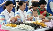 추석 명절을 앞두고 다문화 가족들이 2일 서울 양천구 대한적십자사 양천강서희망나눔센터에서 유중근 대한적십자사 총재(오른쪽)와 함께 송편을 빚고 있다. 이날 ‘한가위 한마당’ 행사는 사회적 취약 계층에 구호물품을 지원하는 ‘희망풍차 사업’의 일환으로 진행됐다. 최혁중 기자 sajinman@donga.com}
