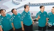 김무성 새누리당 대표(가운데)와 최고위원들이 15일 오전 인천아시아경기대회 주경기장에서 ‘현장 최고위원회의’를 열기 전 유정복 인천시장(김 대표 오른쪽)의 안내를 받으며 경기장을 둘러보고 있다. 김 대표는 “새누리당도 전국 당원들에게 홍보해 2억 원 이상의 입장권을 구매하도록 하겠다”고 말했다. 인천=최혁중 기자 sajinman@donga.com}