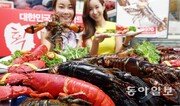 롯데마트는 다음 달 1일까지 미국 현지의 바다 가두리 양식장에서 직접 키운 후 들여온 활(活)로브스터(마리당 450g 내외) 15만 마리를 판매한다. 롯데 신한 KB국민 하나SK카드 결제 고객은 마리당 9970원에, 다른 신용카드나 현금을 이용하는 고객은 마리당 1만3300원에 구매할 수 있다. 28일 서울 성동구 행당로 롯데마트 행당역점에서 모델들이 로브스터를 들고 포즈를 취했다.최혁중 기자 sajinman@donga.com}