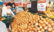 5일 서울 중구 롯데마트 서울역점이 양파 1개를 450원에 판매하는 행사를 열고 있다. 최근 서울 가락시장의 양파 1kg 도매가격이 1200원을 돌파하는 등 양파 가격이 계속 상승하자 롯데마트는 가격 안정화 차원에서 8일까지 300t 한정으로 이 같은 행사를 열고 있다. 장승윤 기자 tomato99@donga.com}