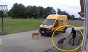 맹견을 맞닥뜨린 택배기사가 기발한 방법으로 위기를 모면하는 영상이 온라인에서 눈길을 끌고 있다.동영상 공유사이트 라이브릭은 미국 화물특송 회사 페덱스(FedEx)의 한 배달 기사가 맹견을 퇴치하는 영상을 23일 소개했다.영상은 지난 18일 미국 텍사스주의 한 가정집 현관문에 설치된 폐쇄회로(CC)TV에 찍힌 장면이다.페덱스 기사는 마당에 풀어 놓은 맹견(핏불) 두 마리가 돌연 달려들자 등을 보이지 않고 개와 마주한 상태로 ‘훠우~’라고 괴성을 지르며 들고 있던 물건을 흔들어 댔다.그러자 개는 놀라서 주춤 했고, 그 사이 택배 기사는 계속 괴성을 지르며 자신의 자동차 쪽으로 슬금슬금 옆걸음치다가 재빨리 차에 올라탔다.영상을 본 네티즌들은 해당 기사가 당황하지 않고 침착하게 대응한다는 점에 따라, 수차례 맹견을 맞닥뜨리며 얻은 노하우일 것으로 추정했다.박태근 동아닷컴 기자 ptk@donga.com}