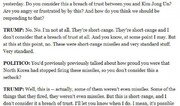 도널드 트럼프 미국 대통령이 북한의 단거리 미사일 발사에 대해 10일(현지시간) "신뢰위반(breach of trust)이 아니라고 본다"며 대화의 문을 열어뒀다.트럼프 대통령은 이날 미국 정치전문매체 폴리티코와의 인터뷰에서 '어제 북한이 미사일 발사를 감행한 것은 김정은과의 신뢰 위반이라고 보느냐?'는 질문을 받자 "절대 그렇지 않다(No. No. I’m not at all) 그것들(미사일)은 단거리(short-range)다. 그래서 나는 그게 전혀 신뢰 위반이라고 생각하지 않는다. 어느 순간에는 그렇게 생각하게될 수도 있겠지만 지금은 아니다"라고 말했다.이어 "그것들은 단거리 마사일(short-range missiles)이었고 아주 일반적인 것들(very standard stuff)이었다"고 평가 절하했다.이에 기자가 '대통령께서는 일전에 북한이 미사일 발사를 중단 했던 것에 대해 자랑스럽게 이야기 하지 않으셨냐. 이번 일을 좌절로 여기지 않는다는 거냐?'고 거듭 묻자 "음...이건 사실...그것들(발사체)중 일부는 미사일도 아니었다. 그것은 단거리인데, 나는 그것을 신뢰위반이라고 생각하지 않는다는 거다. 내말은 언젠가는 그렇게 될(신뢰위반으로 간주할)수도 있겠지만 지금은 전혀 그렇지 않다는 거다. 그렇게 (생각하게)된다면 알려주겠다"고 답했다.이는 트럼프 대통령이 그간 공들였던 협상 분위기를 이어가기 위해 극도로 인내하는 것으로 풀이된다.마이크 펜스 미국 부통령도 같은 날 폭스뉴스에 출연했지만 북한에 대한 강경 발언은 하지 않았다.박태근 동아닷컴 기자 ptk@donga.com}