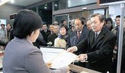 보수 성향의 165개 시민사회단체로 구성된 복지포퓰리즘추방 국민운동본부가 31일 초등학교 전면 무상급식 실시 반대 국민투표 시행을 위한 대표자 청구인 신청서를 서울시에 제출했다. 류태영 전 건국대 부총장(앞줄 오른쪽에서 세 번째) 등 청구인 대표와 김춘규 한국미래포럼 상임대표(앞줄 오른쪽) 등 본부 관계자 10여 명은 이날 오전 11시 서울 중구 서소문동 서울시청 민원실에 ‘전면무상급식 반대 주민투표실시 국민 청구 신청서’를 제출했다. 이들은 “재원이 확보되지 않은 상황에서 전면 무상 정책을 시행하는 것은 유권자를 현혹하는 것”이라고 지적했다. 홍진환 기자 jean@donga.com}