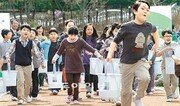 초록우산어린이재단은 ‘세계 물의 날’을 하루 앞둔 21일 서울 광진구 광장동 양진초등학교에서 식수 부족으로 고통받는 아프리카 어린이들의 고통을 체험하고 물의 소중함을 배우는 ‘물의 날 캠페인’을 벌였다. 행사에 참여한 초등학생들이 물통에서 물을 한 방울도 흘리지 않고 운동장을 뛰는 체험을 하고 있다. 홍진환 기자 jean@donga.com}