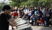 15일 오후 서울 종로구 세종로 국립민속박물관 앞 나무그늘에서 ‘수요 민속 음악회’가 열렸다. 관람객들이 국악 전문 공연그룹인 ‘디딤소리(달램)’가 펼치는 ‘북놀이춤’ 공연을 감상하고 있다. 홍진환 기자 jean@donga.com}