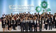 11일 인천 송도컨벤시아에서 개막한 ‘2011 세계모의유엔회의’에서 반기문 유엔 사무총장(앞줄 왼쪽에서 두 번째)이 기조연설을 마친 뒤 참가자들과 기념촬영을 하고 있다. 이번 모의유엔회의에는 세계 61개국 대학생 646명이 참가했다. 반 총장 오른쪽은 송영길 인천시장.인천=홍진환 기자 jean@donga.com}