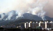 경남 밀양에서 대형 산불이 나 산림당국이 총력 대응에 나섰지만 건조한 날씨와 강풍 탓에 진화에 성공하지 못한 채 불길이 확산되고 있다. 해가 지면서 헬기를 동원한 진화 작업이 중단돼 밤새 피해가 늘어날 것으로 우려된다. 31일 오전 9시 25분경 밀양시 부북면 춘화리 일대에서 산불이 발생했다. 산불은 초속 11m 이상의 강풍을 타고 급속도로 확산됐고, 산림청은 산불 대응 3단계와 산불 국가위기경보 ‘심각’ 단계를 발령하는 한편 헬기 44대와 1604명을 투입해 진화에 나섰다. 그러나 건조주의보가 내려질 정도로 산림이 메마른 데다 꺼졌던 불씨도 강풍에 되살아나면서 종일 진화에 애를 먹었고, 피해는 계속 확산됐다. 산림청에 따르면 오후 9시 기준으로 산불 피해 지역은 251ha(축구장 350개 면적)에 달했지만 진화율은 41%에 그쳤다. 오후 7시 40분경 해가 지면서 헬기 진화는 중단됐다. 산림 당국은 산불특수진화대와 공중진화대 456명을 투입해 야간 진화에 나섰다. 산불이 인접한 마을을 위협하면서 주민 476명이 긴급히 대피했고, 인근 요양병원 2곳의 환자와 직원 254명도 대피했다. 불길이 밀양구치소 인근까지 번지자 법무부는 오후 3시 5분경 수감자 391명을 버스에 태워 최근 건설한 대구교도소로 임시 이송하기도 했다. 남성현 산림청장은 “1일 해가 뜨자마자 헬기와 산불 진화 차량을 집중 투입해 신속히 진화를 마무리하겠다”고 밝혔다. 윤석열 대통령은 이날 “가용한 모든 장비와 인력을 신속히 투입해 산불 조기 진화에 총력을 기울이라”고 지시했다. 산림당국은 진화를 마치는 대로 화재 원인을 조사할 계획이다.밀양=최창환 기자 oldbay77@donga.com}