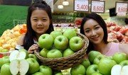 14일 서울 용산구 한강대로 이마트 용산점에서 올해 처음 수확한 아오리 사과를 모델들이 선보이고 있다. 아오리는 가장 출하 시기가 이른 품종으로 초록색 껍질과 단단한 과육이 특징이다. 최혁중 기자 sajinman@donga.com}