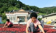 절기상 가을의 시작을 알리는 입추가 하루 지난 8일 전북 순창군 쌍치면의 한 마을앞 공터에서 주민들이 빨간 고추를 말리며 머지않은 가을을 기다리고 있다. 박영철 기자 skyblue@donga.com}