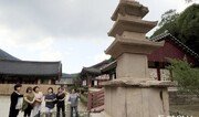 최근 유네스코 세계문화유산으로 등재된 전남 해남의 아름다운 산사인 대흥사를 찾는 관광객들의 발길이 늘고 있다. 21일 대흥보전 앞에 자리 잡은 보물 제320호 해남 대흥사 삼층석탑에서 문화해설사가 탐방객들에게 탑에 얽힌 사연을 전해주고 있다. 박영철 기자 skyblue@donga.com}