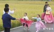 추석연휴를 하루 앞둔 21일 전남 해남군 땅끝마을 인근의 북일면 월성마을. 고운 한복 차림의 어린 손녀들이 할아버지, 할머니 품에 안기기 위해 힘껏 달려가고 있다. 부모님께 드릴 선물을 손에 든 부부는 미소가 가득한 얼굴로 아이들의 뒤를 따르고 있다. 해남=박영철 기자 skyblue@donga.com}