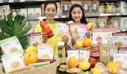 “17일 서울 용산구 이마트 용산점에서 모델들이 건조된 과일을 물에 우려서 마실 수 있는 ‘이너워터팩’을 선보이고 있다. 제품당 3봉지가 들어있다. 한 봉지에 2L의 물을 우려낼 수 있다. ‘하와이 무궁화’ ‘레몬녹차’ ‘유자의 온도’ 3가지 맛이 있다. 가격은 4800원. 김재명 기자 base@donga.com}
