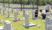 6·25전쟁 69주년을 하루 앞둔 24일 서울 동작구 국립서울현충원 묘역에서 추모객들이 1951년 2월 중공군(현 중국군)의 2차 공세 당시 강원 횡성지구 전투에서 숨진 친족의 묘에 참배하며 술을 올리고 있다. 김재명 기자 base@donga.com}