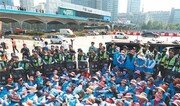 4일 경기 성남시 분당구 경부고속도로 서울요금소에서 한국도로공사 요금수납원 노조원 200여 명이 차량 진입로를 기습 점거해 연좌 농성을 벌이고 있다. 연좌 농성으로 이날 오전 7시 40분부터 약 2시간 동안 부산 방향 진입로 6개의 통행이 불가능해졌고 한때 판교분기점까지 지·정체 현상이 이어졌다. 노조원들은 자회사 정규직으로 소속이 바뀌는 것에 반발해 회사 측에 직접고용을 요구하고 있다. 성남=김재명 기자 base@donga.com}