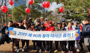 “오늘 마라톤에 출전하려고 보름간 다이어트를 했습니다. 얼마나 뺐냐고요? 한 근(600g)이오!” 17일 개그맨 이용식 씨가 이렇게 말하며 주먹을 불끈 쥐었다. 이 씨는 이날 열린 2019 서울국제마라톤 겸 제90회 동아마라톤 10㎞ 부문에 참가하기 위해 출발점인 서울 송파구 올림픽공원에서 준비 운동을 하고 있었다. 이 씨는 지난해(제89회) 동아마라톤에선 4㎞가량 달리다가 근육 경련이 일어나 포기했지만 이번엔 반드시 완주하겠다며 각오를 다졌다.이날 동아마라톤 10㎞ 부문엔 채널A 건강정보 프로그램 ‘나는 몸신이다’(이하 ‘몸신’)의 출연진이 단체로 출전했다. ‘몸신’ MC 정은아 씨 말고는 마라톤을 제대로 뛰어본 경험을 가진 출연진은 거의 없었다. 배우 송옥숙 씨는 “마라톤은 처음이지만 평소 트레드밀(러닝머신)에서 1시간 정도 편하게 뛰기 때문에 걱정 없다”며 자신감을 보였다. 이날 오전 올림픽공원엔 1만5000여 명의 인파가 몰려 축제 분위기였다. 송파구의 미세먼지 농도는 ㎥당 41μg(마이크로그램·1μg은 100만분의 1g)으로 양호했다. 기온은 8도 안팎으로 다소 쌀쌀했지만 준비 운동을 하자 금세 몸이 달아올랐다. 최근 갑상선 항진증의 합병증인 안병증에서 회복해 건강을 되찾고 있는 서유리 씨는 “(중간에 쓰러져) 실려 나가지만 않았으면 좋겠다”면서도 “체력장에서 ‘특급’ 판정을 받을 정도로 좋았던 학창시절의 건강을 되찾겠다”고 각오를 다졌다. 오전 10시경 출발 신호가 울리자 ‘몸신’ 출연진을 비롯한 참가자들이 일제히 차량이 통제된 도로로 쏟아져 나왔다. 지난해 채널A ‘하트시그널 시즌2’에도 출연한 ‘몸신’ 전문가 패널 김도균 씨는 “평소 출퇴근하던 차도 위를 두 다리로 달리니 기분이 정말 좋다”며 “이게 도심 마라톤의 매력이라는 걸 새삼 느꼈다”고 말했다.가수 레이디 제인 씨는 1시간 16분 만에 완주했다. 그는 “혼자서 달릴 땐 5㎞도 못 가서 지치곤 했는데 오늘은 정신을 차려보니 7㎞ 지점이더라”라며 “여러 사람과 함께 달리며 서로 격려를 하는 게 동아마라톤의 매력”이라고 말했다. MC 정은아 씨는 1시간 15분을 기록했다. 이번 동아마라톤 10㎞ 부문은 결승점을 앞둔 2㎞ 구간이 종로구 광화문광장에서 출발한 풀코스 참가자들과 코스가 겹친다. 정 씨는 “40㎞ 가량 달려온 진정한 마라토너들을 곁눈질로라도 옆에서 보며 함께 달릴 수 있다는 건 대단한 경험이었다”며 감격했다. 마라톤은 ‘무릎이 상하는 운동’이라는 오해와 달리 불필요한 체지방을 감소시켜 관절과 근육의 부담을 줄여준다. 심혈관계와 면역계에도 도움이 돼 전반적인 건강 향상에 크게 기여한다. 여기에 균형감각과 뇌 신경기능까지 높이기 때문에 치매 예방에도 도움이 되는 것으로 알려져 있다. ‘몸신’ 전문가 패널 오한진 을지대병원 가정의학과 교수는 “마라톤은 에너지의 원천인 심폐 기능을 다질 수 있어 좋은 운동”이라고 권했다. 대한영양사협회장을 지낸 임경숙 수원대 식품영양학과 교수(‘몸신’ 전문가 패널)는 “마라톤을 준비하려면 평소 단백질과 탄수화물을 균형 있게 섭취하고, 대회 참가 3일 전부터 바나나나 단팥빵 등으로 탄수화물을 충분히 먹는 게 좋다”고 조언했다. 조건희 기자 becom@donga.com}