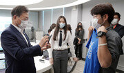 “지금 제일 현안인 미래의 부동산에 대해서….” 문재인 대통령이 18일 ‘그린 스마트 스쿨’ 현장인 서울 중구 창덕여중을 방문해 “미래에 대해서 궁금하신 게 있냐”는 수학교사 안영석 씨의 질문을 받자 이같이 말했다. “함수를 사용하면 미래에 대한 예측이 가능하다”는 취지로 수학학습용 소프트웨어로 진행된 체험 수업 중 주고받은 발언이었다. 문 대통령의 답변에 수학교사 안 씨는 “저도 (부동산에) 관심이 많은데요, 그럴 때 그래프를 그려보시라”고 말했고 이에 문 대통령은 “사회적 현상도, 경제적 현상도 분석이 되나”라고 질문하며 관심을 보였다. 최근 정책 혼선이 빚어진 부동산 시장에 대한 문 대통령의 고민이 묻어났다는 해석이 나온다. 문 대통령은 이날 유은혜 사회부총리 겸 교육부 장관, 김상조 대통령정책실장 등과 함께 스마트기기로 진행되는 수업을 체험했다. 이어진 과학수업은 실감형 콘텐츠(AR)를 이용해 혈액순환의 원리를 배우는 내용으로 진행됐고 문 대통령은 “이 같은 디지털 교과서가 전국 모든 학교의 선생님들이나 학생들에게까지 다 보급돼 있냐”며 관심을 보였다. 체험 수업 뒤 전국 시도교육감과의 화상 간담회에서 문 대통령은 “40년이 넘은 노후 학교가 그린 스마트 스쿨로 거듭난 모습에서 한국판 뉴딜이 교육현장에서 열어갈 새로운 미래를 봤다”며 “스마트 교실로 디지털 기반 융합교육 체계를 구축하고, 그린학교로 학교 자체가 환경 교육의 장이자 교재가 되게 하겠다”고 강조했다. 또 비공개 간담회에서 문 대통령은 “(그린 스마트 스쿨 추진에) 속도를 좀 더 내려면 민자까지도 동원하는 노력이 필요하다”고 주문했다고 강민석 청와대 대변인이 전했다. 황형준 기자 constant25@donga.com}