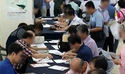 13일 부산 부산진구 부산경영자총협회 고용지원센터에서 열린 ‘2017 경력직·중장년 미니 일자리 박람회’에 온 ‘베이비부머’ 구직자들이 이력서를 쓰고 있다. 부산시 주관으로 열린 이날 박람회에는 150여 명을 채용하려는 41개 업체가 참여했다. 부산=박경모 기자 momo@donga.com}
