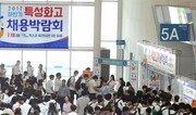 18일 부산 해운대구 벡스코 제2전시장에서 열린 ‘2017 하반기 특성화고 채용박람회’를 찾은 특성화고 학생들이 입장을 기다리며 줄지어 서있다. 부산지방중소기업청이 부산벤처기업협회, 부산지방병무청과 공동 개최한 이날 채용박람회에는 학생 1500여 명이 찾아 부스를 차린 78개 기업과 취업상담 등을 했다. 부산=박경모 기자 momo@donga.com}