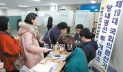 23일 서울 강서구 우장산동주민센터에서 주민들이 4·11총선 부재자신고서를 내고 있다. 선거 당일 투표할 수 없는 유권자는 27일 오후 6시까지 직접 또는 우편으로 주민등록지 시군구읍면장에게 부재자신고서를 제출해야 한다. 전영한 기자 scoopjyh@donga.com}