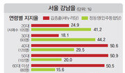 ■ 강남을 김종훈-정동영한미 자유무역협정(FTA) 협상의 주역이자 ‘검투사’로 불리는 새누리당 김종훈 전 통상교섭본부장(39.2%)이 단박에 민주통합당 정동영 상임고문의 지지율(30.5%)을 넘어섰다. 새누리당은 이영조 전 바른사회시민회의 대표의 공천 취소 등 공천 작업의 혼선으로 지역 여론이 악화될 것을 우려했으나 ‘한미 FTA 구도’가 주효했다고 분석했다. FTA 폐기론자인 정 상임고문은 지난해 국회에서 김 전 본부장을 매국노 ‘이완용’에 빗대는 등 김 전 본부장과 날카롭게 대립해 왔다. 한미 FTA가 핵심 이슈로 떠오른 이 지역 유권자의 55.1%는 한미 FTA 추진에 찬성했다. 발효를 정지하고 전면 재검토해야 한다는 응답은 26.3%였고 무조건 폐기해야 한다는 응답은 3.3%에 그쳤다. FTA에 대한 이런 태도는 고스란히 후보 호감도로 이어졌다. 정 상임고문은 인지도에서 92.2%로 김 전 본부장(65.6%)을 월등히 앞섰지만 호감도는 24.3%에 그쳤다. 비호감도(58.2%)가 2배 이상으로 높았다. 반면 김 전 본부장은 호감도(47.2%)가 비호감도(28.4%)를 크게 앞섰다. 정 상임고문은 20대(41.2%)와 30대(44.2%)에서 높은 지지율을 보였다. 정당 지지율은 새누리당(29.8%)이 민주당(14.9%)의 2배였다. 이재명 기자 egija@donga.com ■ 은평을 이재오-천호선서울 은평을에선 새누리당 이재오 의원(37.3%)과 야권 단일후보인 통합진보당 천호선 대변인(32.8%)이 혈전을 펼치고 있는 양상이다. 서울 은평을은 이 의원이 15대부터 4선을 한 ‘텃밭’이다. 이번 동아일보 조사에서 이 의원의 인지도는 무려 91.9%에 달했다. 반면 천 대변인의 인지도는 62.8%에 그쳤다. 은평을에는 서민층이 많이 살아 원래 바닥 민심이 여권에 유리하지 않다. 이 의원은 평소 자전거를 타고 부지런히 지역구를 누비며 17대까지는 비교적 무난하게 당선했다. 그러나 18대 총선에선 당시 창조한국당 문국현 공동대표에게 패했다. 이 의원은 2010년 보궐선거에서 ‘90도 인사’를 강조하며 장상 전 민주당 대표와 천 대변인(국민참여당 후보)을 상대로 승리를 거뒀다. 이번에는 총선 성격을 ‘정권 심판론’으로 생각하는 응답자(41.8%)가 ‘안정적 국정운영’을 바라는 응답자(29.9%)보다 많았다. 20, 30대의 지지율은 천 대변인이 이 의원을 10%포인트 이상 앞섰다. 2010년 보궐선거와 달리 야권연대도 이뤄졌다. 정당지지도는 새누리당(25.5%)과 민주통합당(25.9%)이 비슷했다. 이명박 정부의 ‘실세’와 노무현 정부의 ‘입(대변인)’의 맞대결은 점점 흥미로워지고 있다. 이유종 기자 pen@donga.com }