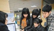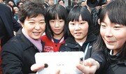 박근혜 새누리당 비상대책위원장이 19일 인천 부평구 산곡동 재래시장을 방문한 자리에서 학생들과 함께 휴대전화 카메라로 사진을 찍고 있다. 인천=변영욱 기자 cut@donga.com}