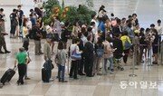 제6회 전국동시지방선거를 하루 앞둔 3일 서울 강서구 김포공항 국내선 청사에서 징검다리 연휴를 이용해 휴가를 즐기려는 가족 단위 여행객들이 길게 줄을 서서 승강장으로 들어가고 있다. 박영대 기자 sannae@donga.com}