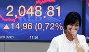 코스피가 2,050 선 턱밑까지 올라 연중 최고치 기록을 경신한 28일 서울 중구 외환은행 본점 딜링룸에서 이 은행 직원이 활짝 웃고 있다. 이날 코스피는 전 거래일(25일)보다 14.96포인트 오른 2,048.81로 마감했으며 종가 기준으로 이전 연중 최고치였던 25일의 2,033.85를 뛰어넘었다. 박영대 기자 sannae@donga.com}