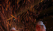 폭염이다. 게다가 국지성 호우까지.계절은 한여름의 정점을 달리고 있다.이런 날, 1300도의 용해로와 화덕을 오가며 단단한 놋쇠를 수천 번 두드려 황금빛 그릇을 만들고 있는 아버지와 아들이 있다. 이봉주 장인(88·중요무형문화재 제77호 명예유기장)과 아들 형근 씨(55)다. 30여 년 전 제자의 실수로 눈에 쇳조각을 맞아오른쪽 시력을 잃고도 길을 바꾸지 않은70년 외길인생 장인이다.경북 문경시 가은읍 납청유기촌, 펄펄 끓는 쇳물을 둥그런 물판에 붓자 공방은 금세 수증기로 가득 찬다. 공방 한쪽엔 치솟는 불길 속에 방짜 유기 금속판을 넣어 달구는 작업이 한창이다. 달구어진 쇠를 한 번에 메질할 수 있는 시간은30∼50초에 불과하기 때문에 숙련공에게도 고도의 집중이 요구된다.다양한 형태의 놋쇠그릇을 만드는 공방 안엔 화염과 뜨거운 열기, 기계음이 뒤섞여 있고 잠시라도 한눈팔 수 없는 긴장이 흐른다.유기는 방짜와 반방짜, 주물로 나뉘는데 방짜 유기는 구리와 주석을 78%와 22%로 섞어여러 명이 수천 번 메질을 해 만든다. 표면이 매끄러운 주물 제품과 달리 방짜 유기는메 자국이 은은하게 남아 있어 멋스럽다. 문경 납청유기촌에서박영대 기자 sannae@donga.com}