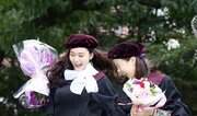 화창한 봄날 햇살 속에서 여대생들의 미소가 아름답다. 10일 서울 노원구 서울여대 학생들이 활짝 웃으며 졸업앨범 촬영을 하고 있다. 박영대 기자 sannae@donga.com}