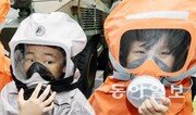 어린이들이 20일 서울 서초구청에서 열린 안보전시회에서 위기상황에 대비해 방독면 착용을 체험해 보고 있다. 서초구는 을지연습(18∼21일)을 맞아 관내 유치원과 초등학생 200명을 초청해 6·25전쟁 사진과 천안함 폭침 및 연평도 포격사건 사진을 전시하고 화생방전과 테러 등 다양한 위협에 대처하는 체험 기회를 제공했다. 박영대 기자 sannae@donga.com}